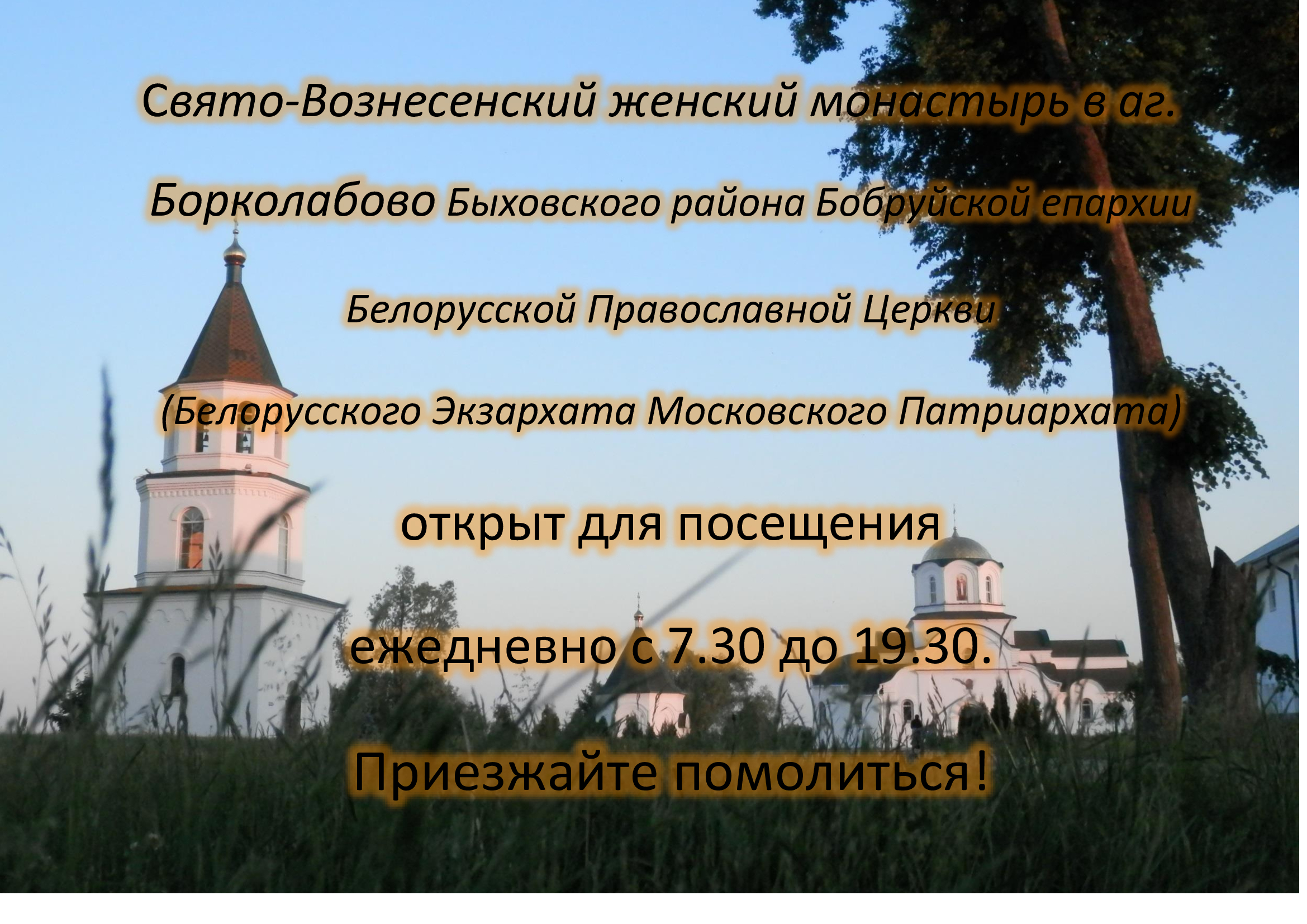 213324, РБ, Могилевская область, Быховский район, попс-4, Свято-Вознесенский женский монастырь тел: 8 (02231) 56 436 email: barkolabovo-mon@tut.by